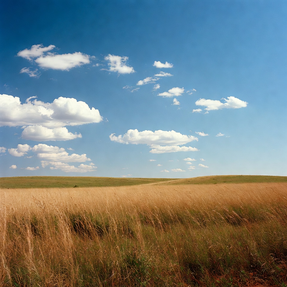 blue sky, clear sky, clouds, dirt path, field landscape, golden grass, grassland, horizon, meadow, natural scenery, nature, outdoor, plain, prairie, rolling hills, rural, scenery, sky, summer landscape, white clouds, wilderness, yellow grass, grass field