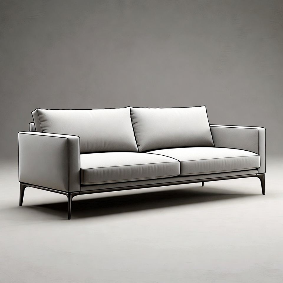 3D render, contemporary design, couch, fabric sofa, furniture, gray sofa, home decor, interior design, isolated background, living room, metal legs, modern sofa, plush cushions, upholstery, sofa