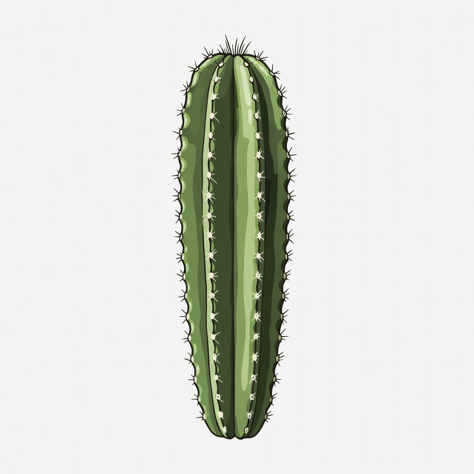 botany, clipart, columnar cactus, desert plant, green cactus, illustration, isolated background, nature, plant, spines, succulent, tall cactus, vector, white background, cactus