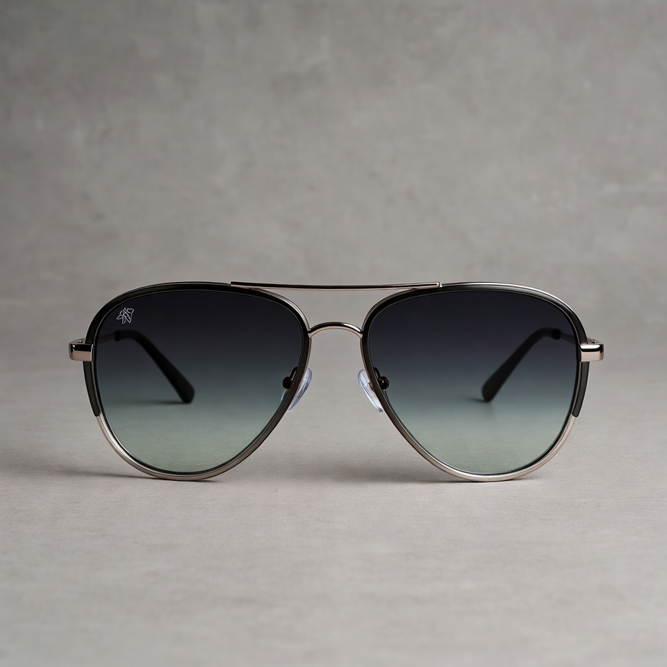 aviator sunglasses, black sunglasses, eyewear, fashion accessory, gradient lenses, green lenses, isolated background, metal frame, pilot style, silver trim, stylish glasses, sunglasses