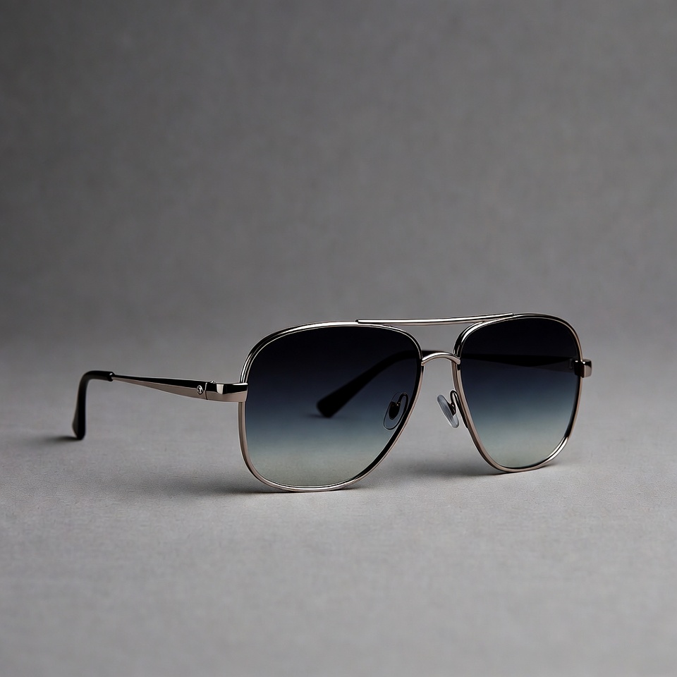 aviator sunglasses, double bridge, eyewear, fashion accessory, gradient lenses, gray background, isolated, luxury eyewear, metal frame, pilot sunglasses, polarized lenses, reflective lenses, silver frame, stylish glasses, sunglasses
