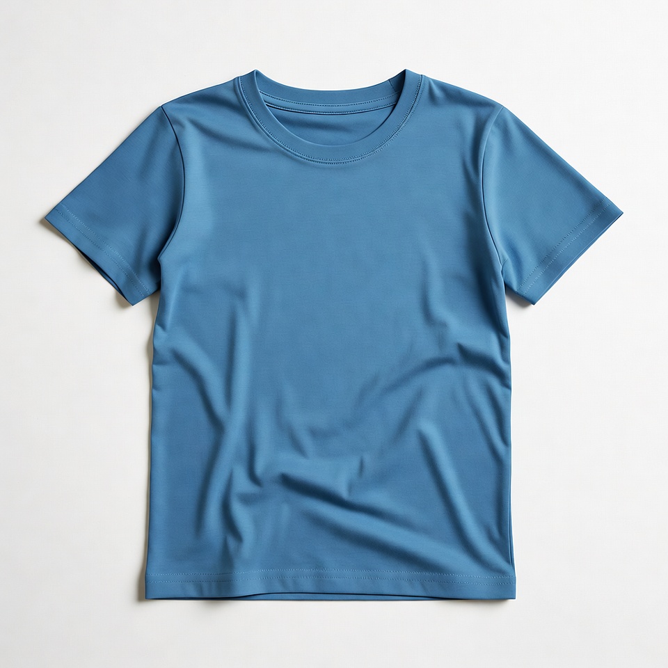 apparel, blank t-shirt, blue t-shirt, casual wear, clothing, cotton shirt, crewneck, front view, isolated background, kids shirt, short sleeve, turquoise shirt, white background, youth t-shirt, t-shirt