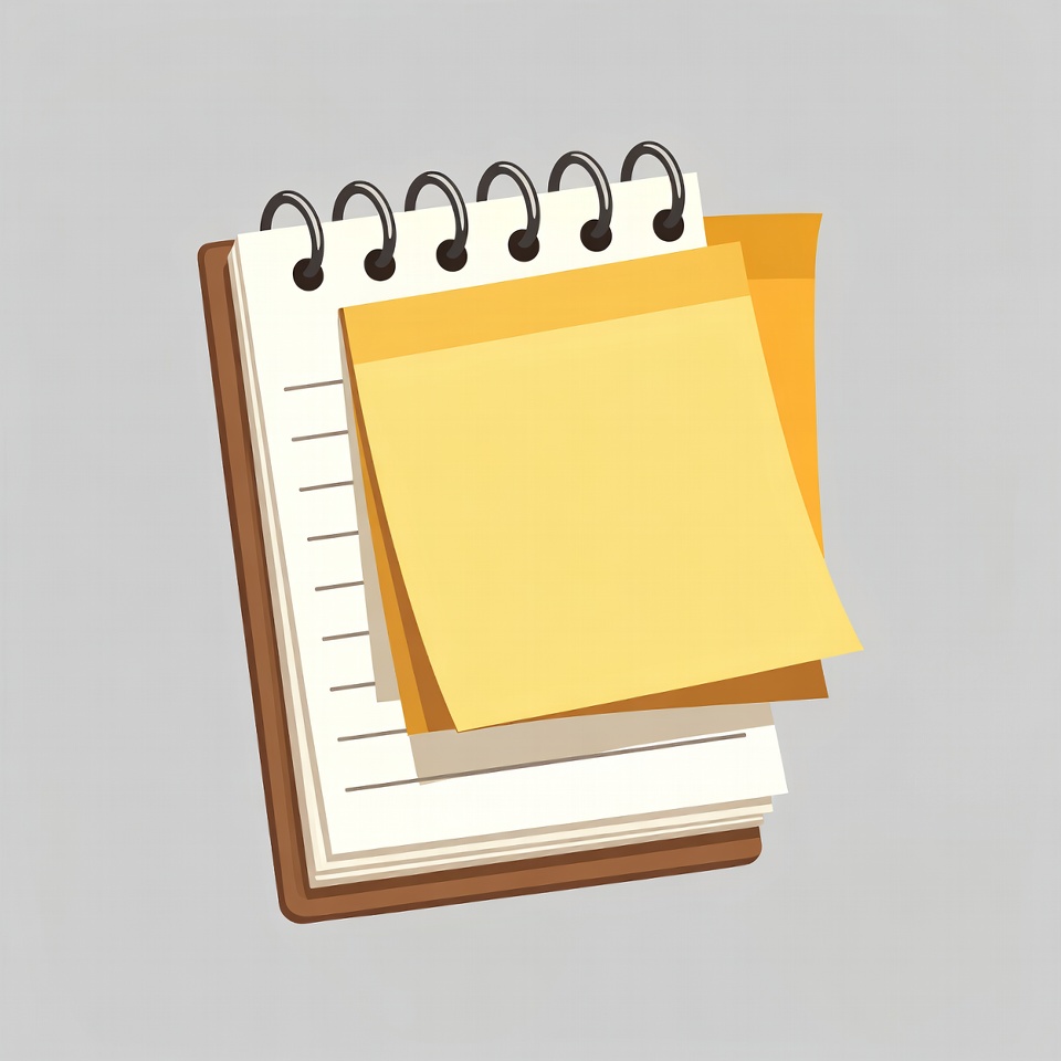 brown clipboard, clipart, gray background, illustration, isolated background, lined paper, notebook, office supplies, post-it notes, stationery, sticky notes, white paper, yellow notes, clipboard