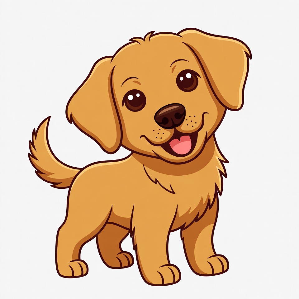adorable puppy, animated dog, big eyes, cartoon dog, clipart, cute puppy, dog, dog illustration, floppy ears, fluffy dog, golden fur, happy puppy, illustration, isolated background, puppy, retriever puppy, smiling dog, wagging tail, young dog, golden retriever