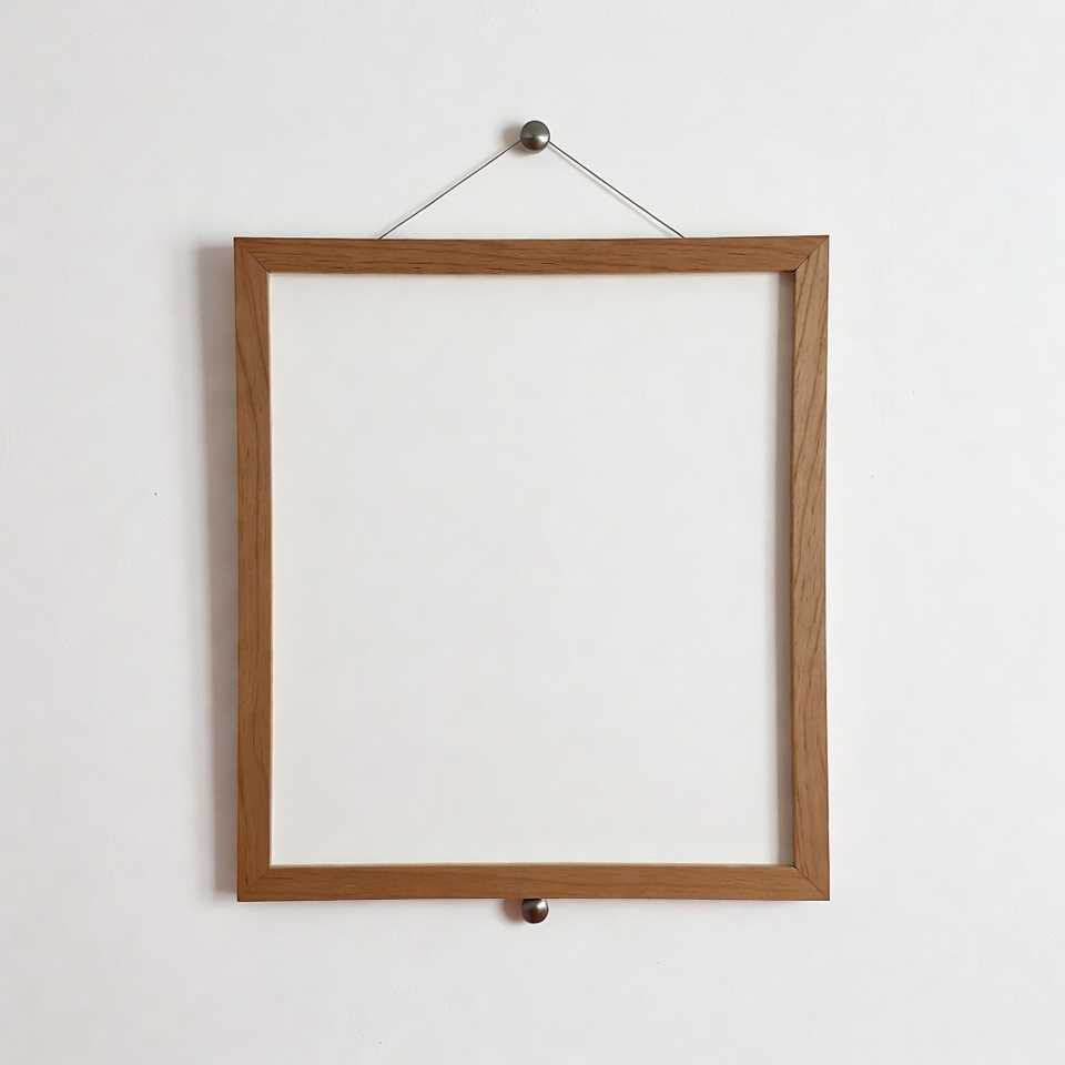 Empty Wooden Picture Frame on Wall