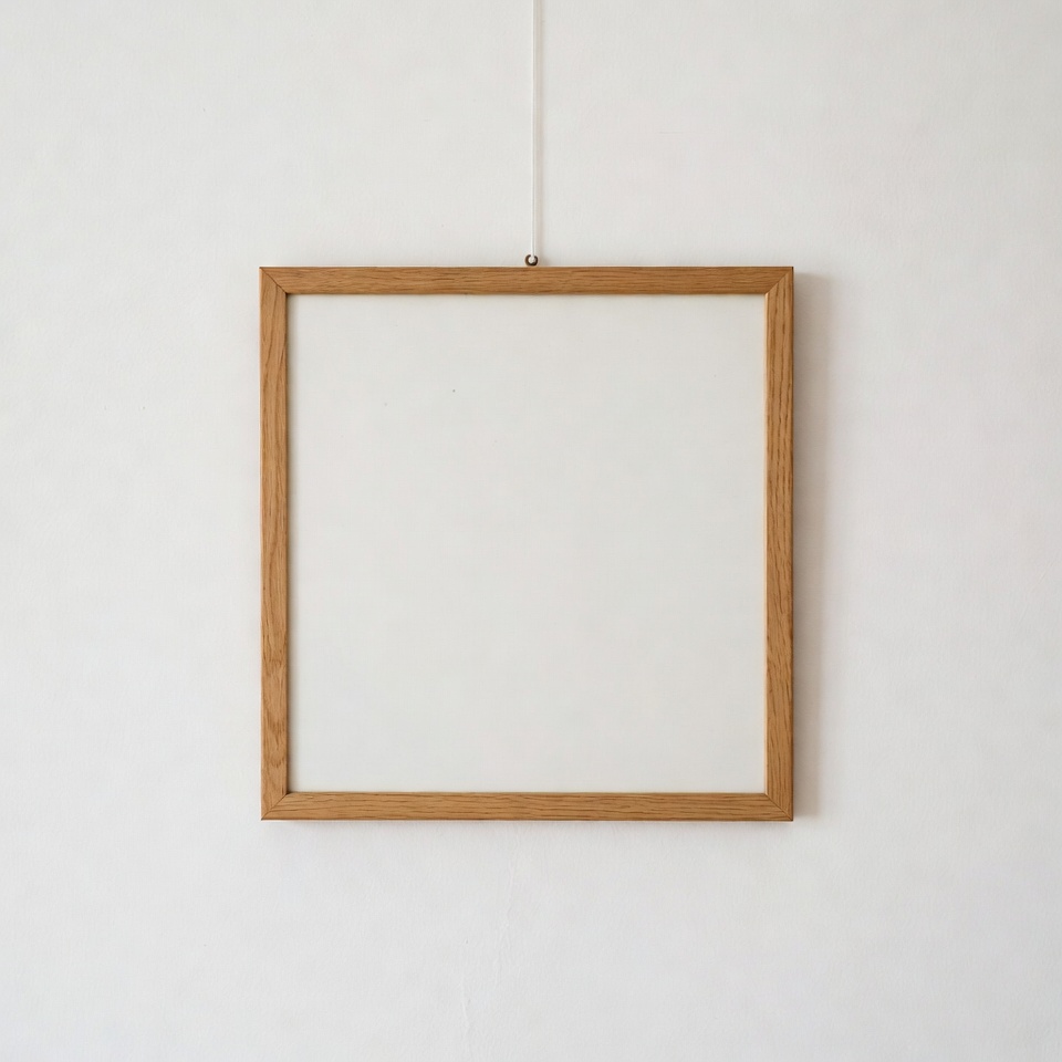 Empty Wooden Frame on White Wall
