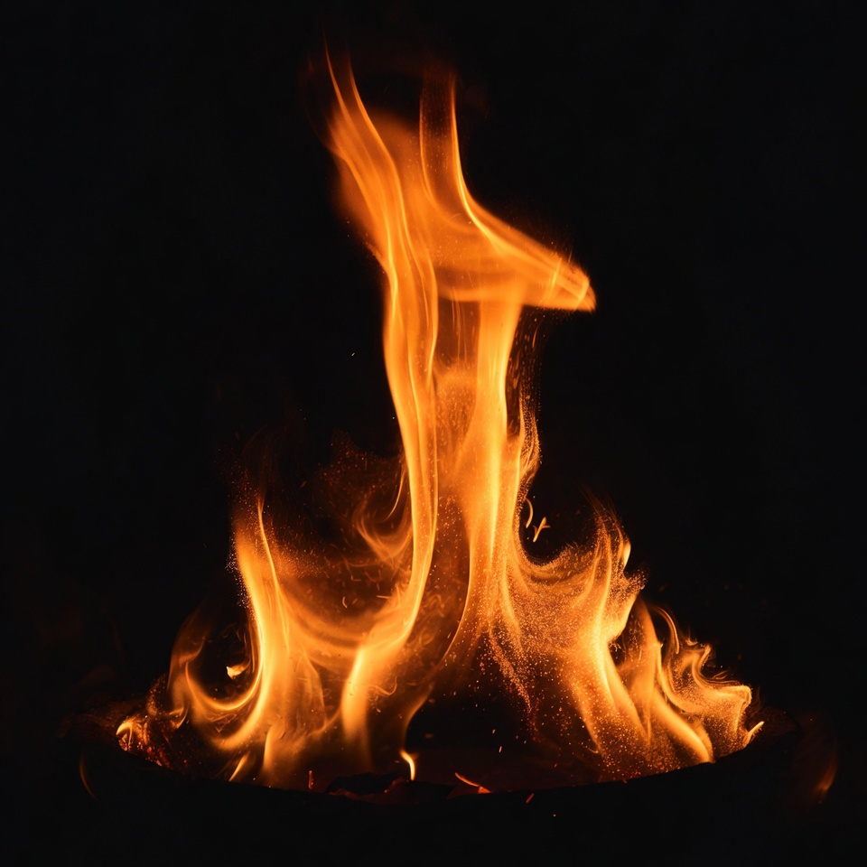 Burning Flames in Dark Background