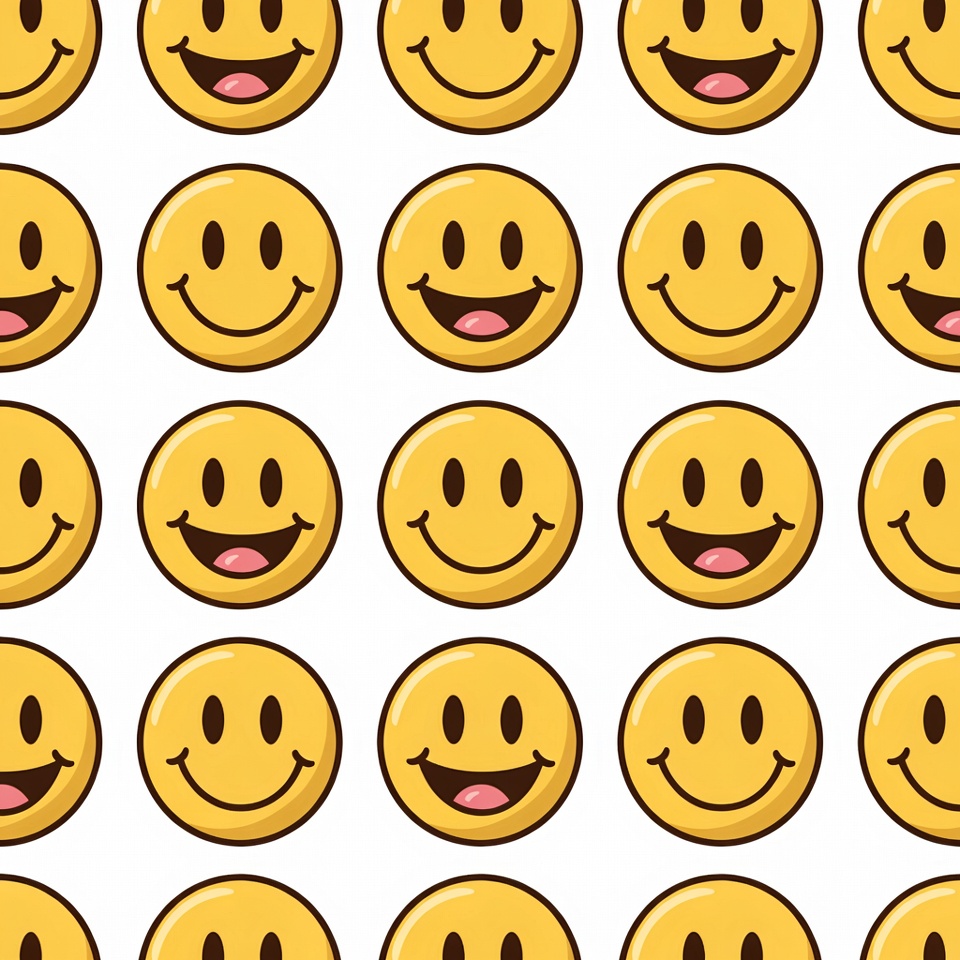 cartoon, cheerful, clipart, cute, emoji, emoticon, eyes, faces, fun, grid, happy face, illustration, outline, pattern, repeating, seamless, smile, white background, yellow, smiley face