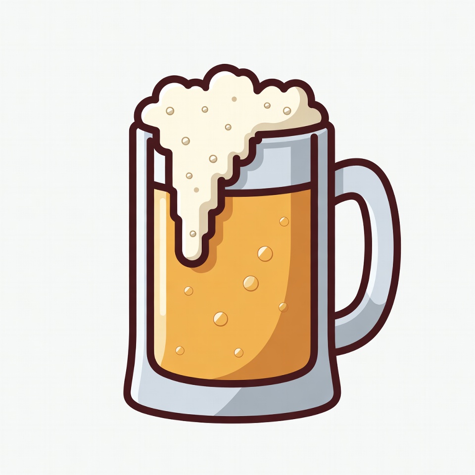 alcohol, bar, beer mug, beverage, bubbles, cartoon beer, clipart, drink, foam, foamy beer, frothy beer, glass mug, golden beer, handle, illustration, isolated, mug, pint glass, pub, vector, white background, beer