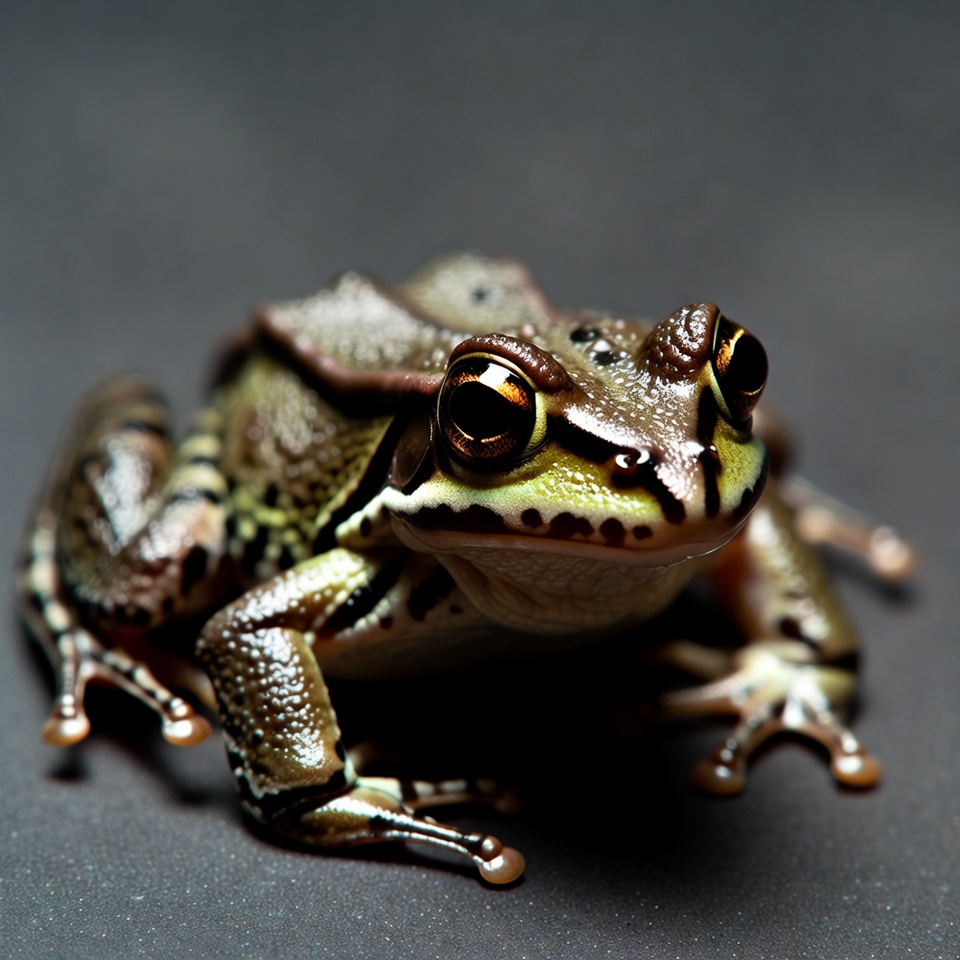 amphibian, animal portrait, brown stripes, close-up, dark background, frog, golden eyes, green frog, large eyes, macro photography, nature, striped frog, textured skin, wildlife, tree frog