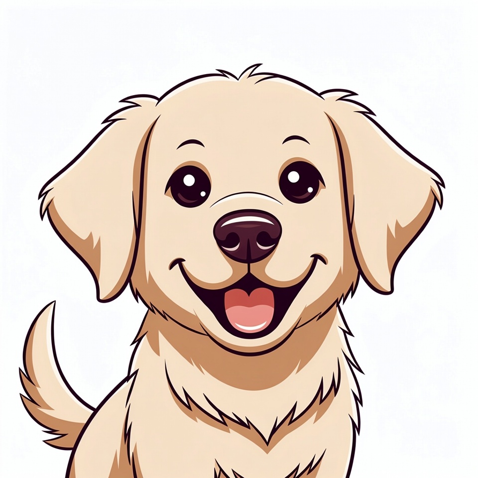 adorable, animal, animated style, big eyes, black nose, cartoon, clipart, cute, dog, fluffy fur, friendly, happy, illustration, pet, playful, puppy, smiling, tongue out, vector, white background, young dog, golden retriever
