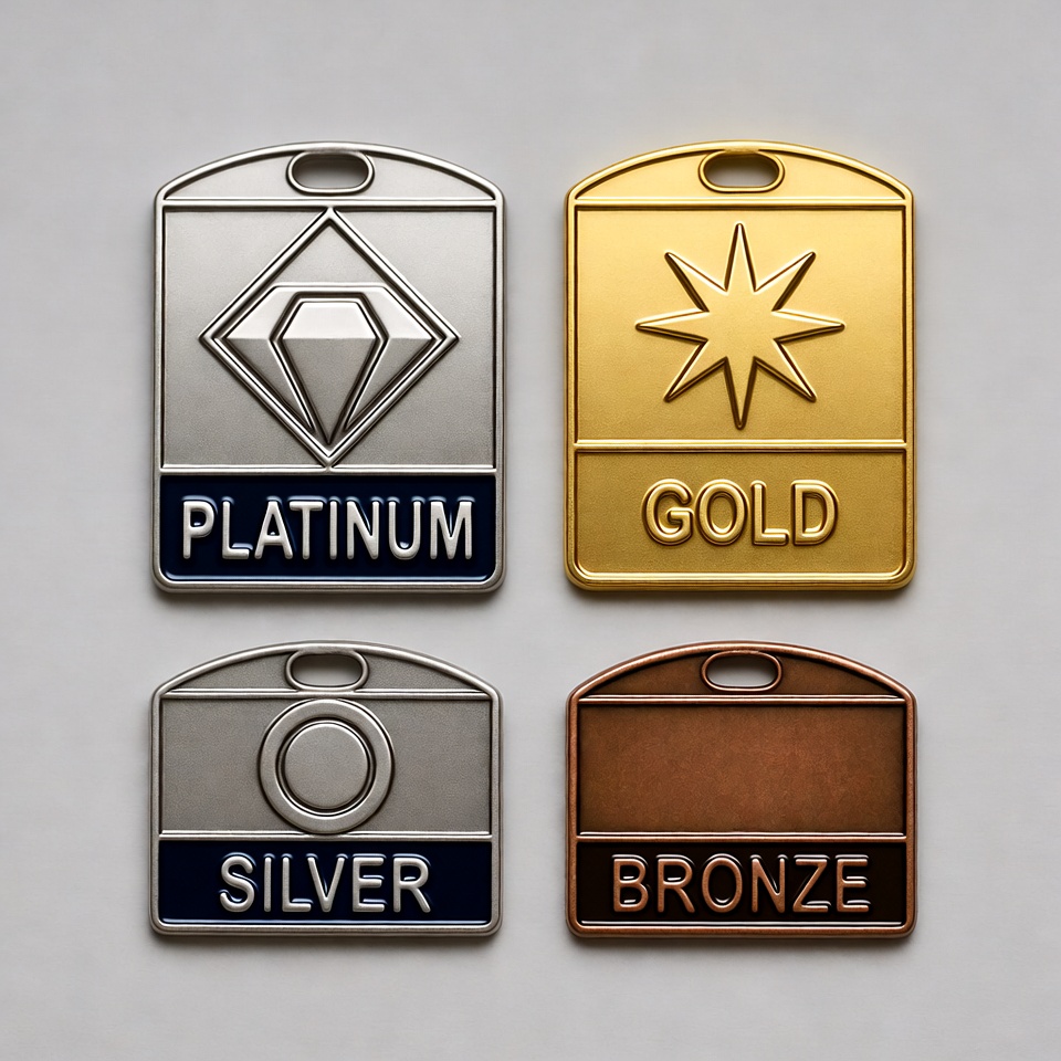 Platinum Gold Silver Bronze Badges