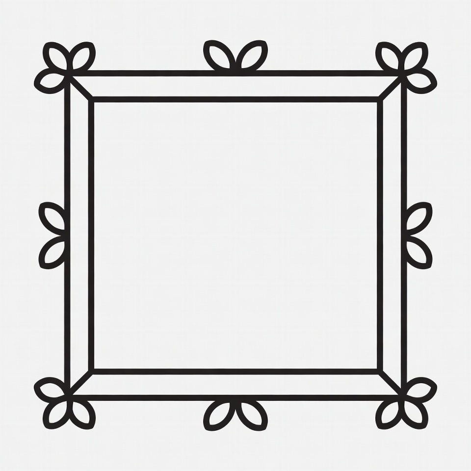 artistic frame, black outline, botanical frame, clipart, corner flowers, decorative border, decorative element, digital illustration, elegant border, empty frame, floral border, floral frame, frame template, graphic design, illustration, leaf design, line art, minimalist design, ornate frame, petal motif, simple drawing, square frame, transparent background, vector graphic, picture frame