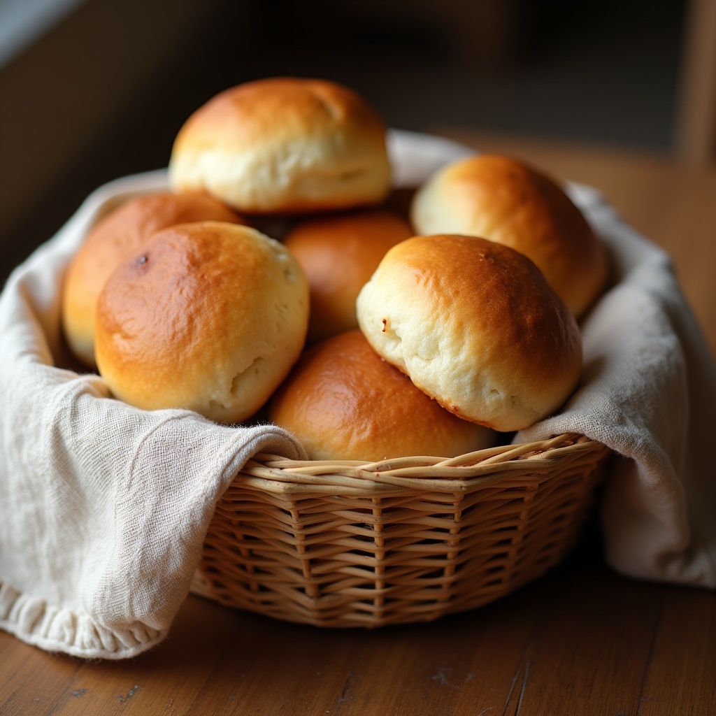 Fresh Dinner Rolls in Wicker Basket