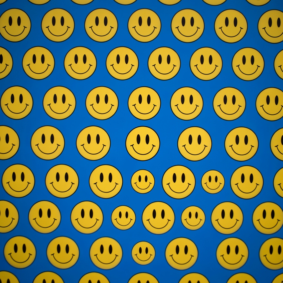 background texture, black eyes, blue background, cartoon, clipart, digital art, emoji, emoticon, fun graphic, grid pattern, happy face, illustration, pattern, repeating design, seamless pattern, smiley, smiling faces, yellow faces, yellow smiley, smiley face
