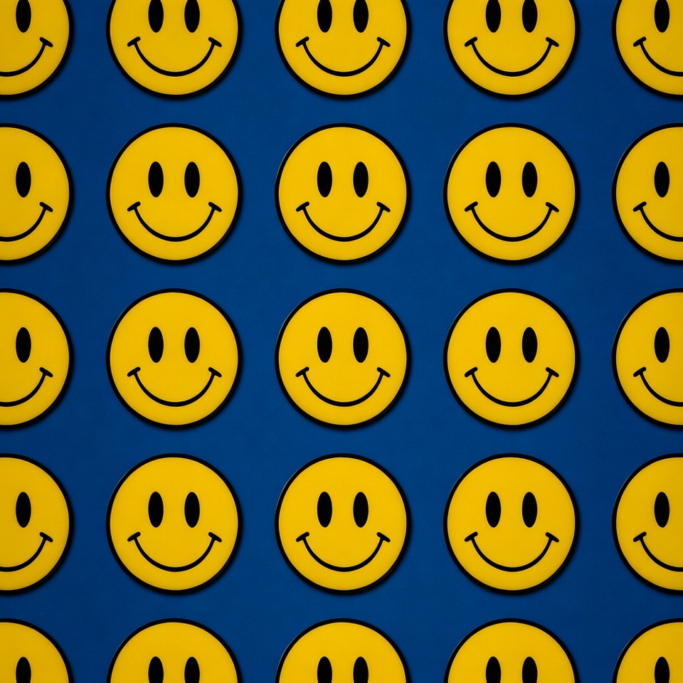 Yellow Smiley Faces on Blue Background