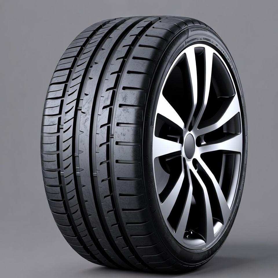 Black performance tire on alloy wheel