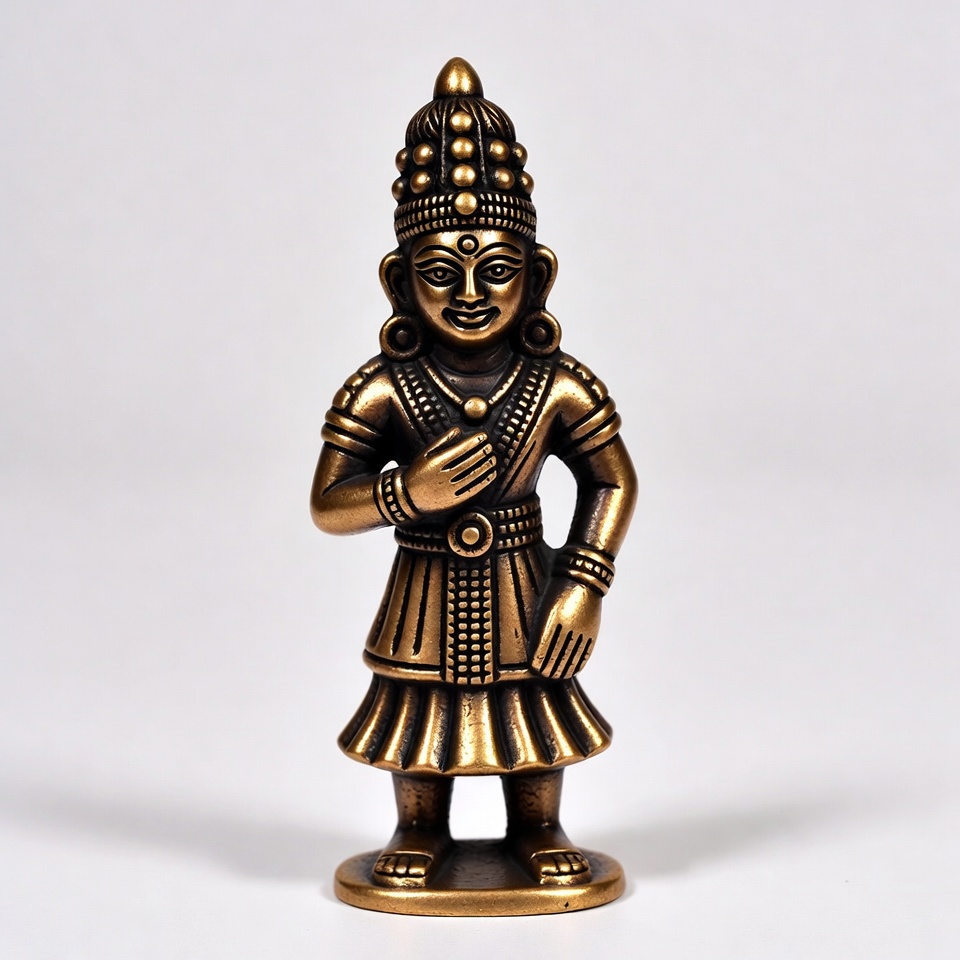 Hinduism, Indian sculpture, South Asian, antique style, brass idol, bronze statue, cultural artifact, deity figurine, devotional statue, female deity, figurine, isolated, mudra gesture, ornate crown, religious idol, sculpture, skirt patterns, traditional jewelry, white background, Hindu goddess