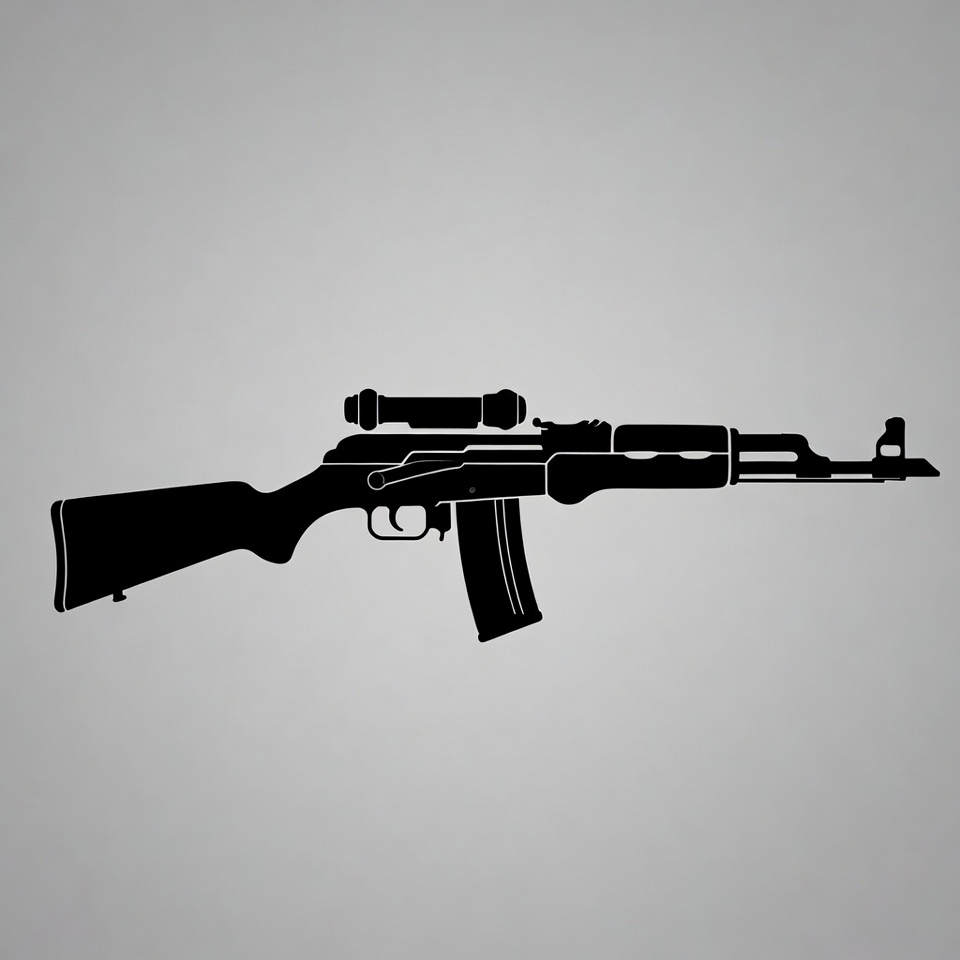 assault rifle, automatic rifle, black silhouette, clipart, firearm, gun, illustration, isolated background, military, rifle, scope, scoped rifle, silhouette, vector art, weapon, AK-74
