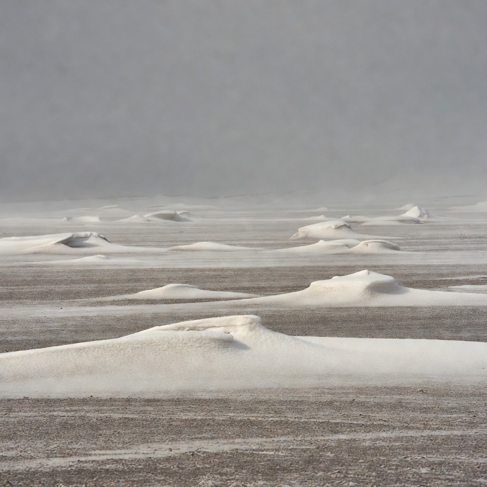 arctic desert, barren terrain, dunes, foggy sky, frozen dunes, gray sky, misty landscape, sand dunes, snow drifts, snow-covered sand, snowy landscape, white snow, windblown snow, winter desert, snow dunes
