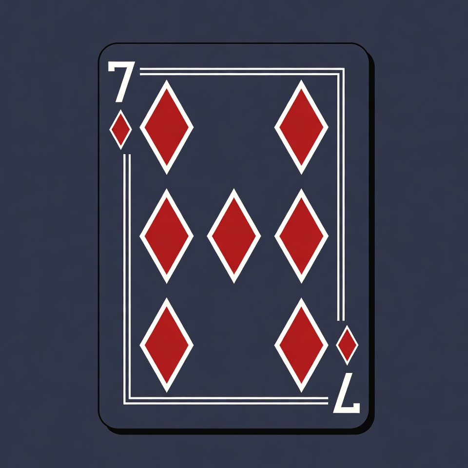 card game, card symbols, casino card, diamonds suit, isolated background, navy background, poker card, red diamonds, seven of diamonds, standard deck, white border, playing card