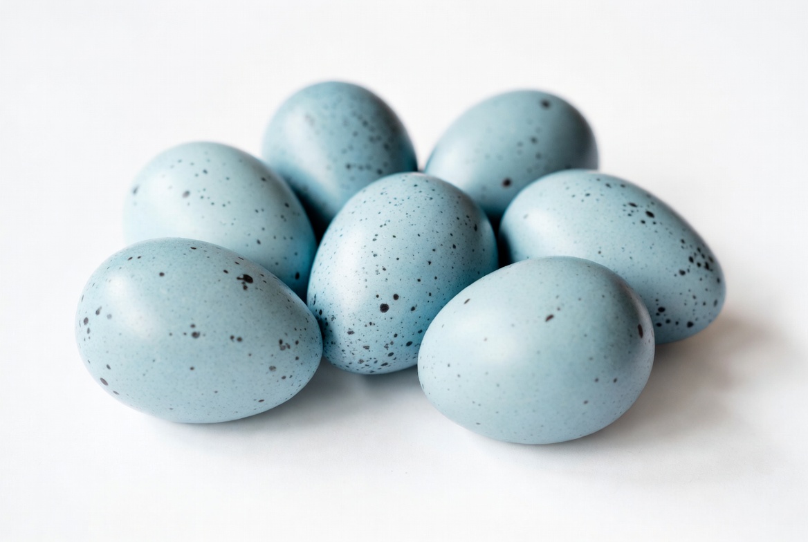 arrangement, bird eggs, cluster, eggs, isolated, nature, pile, robin eggs, smooth, speckled eggs, spotted, textured, white background, wildlife, blue eggs