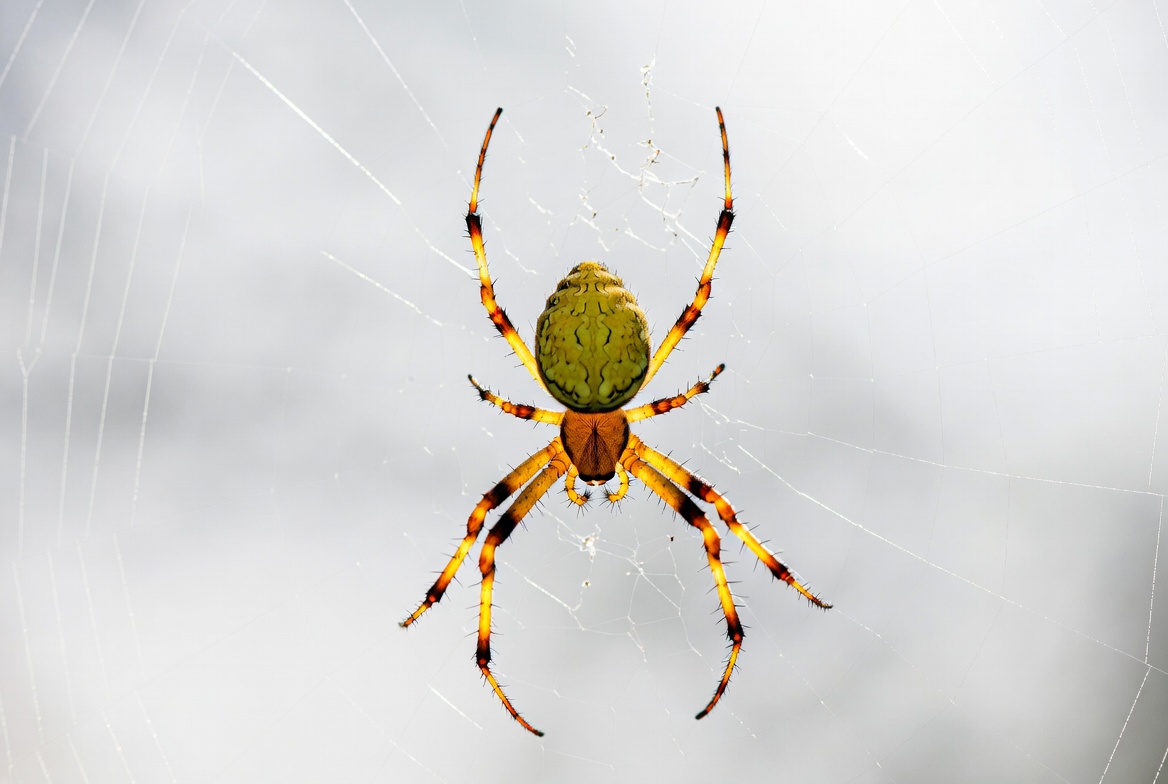 abdomen, animal, arachnid, green spider, insect, legs, macro photography, nature, orb weaver, silk web, spider web, white background, wildlife, yellow legs, spider