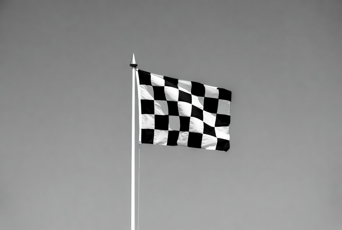 auto racing, black white flag, checkered pattern, competition, finish line, flag pole, isolated background, monochrome, motorsport, racing, racing flag, speed, waving flag, white pole, checkered flag