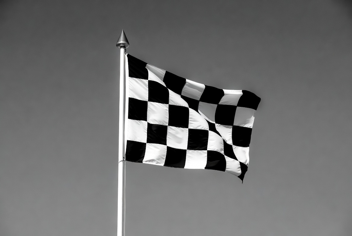 auto racing, black white, checkered pattern, competition, finish line, flag pole, flag waving, isolated background, monochrome, motorsport, racing, racing flag, speed, waving flag, checkered flag