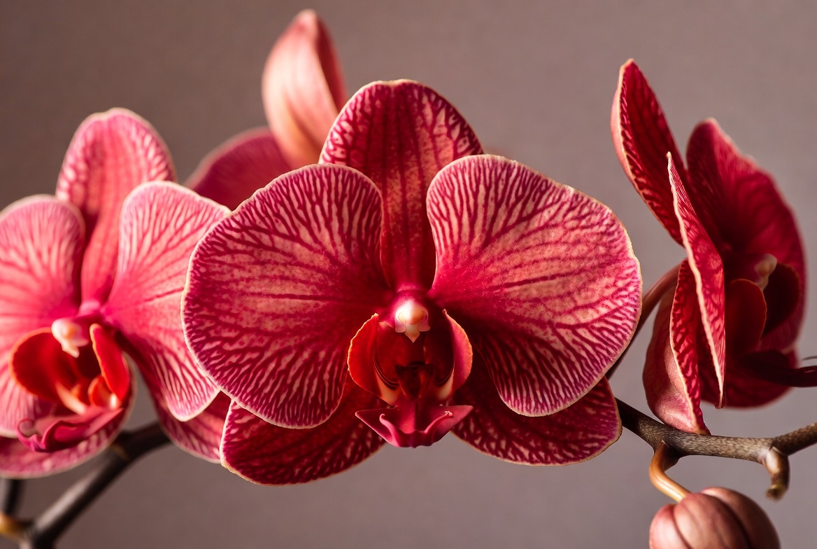 blooming flowers, botany, closeup, exotic flowers, floral, flower cluster, flower photography, flower stems, flowers, magenta flowers, nature, orchid blooms, petals, phalaenopsis, phalaenopsis orchid, pink flowers, pink orchid, tropical flowers, veined petals, orchid
