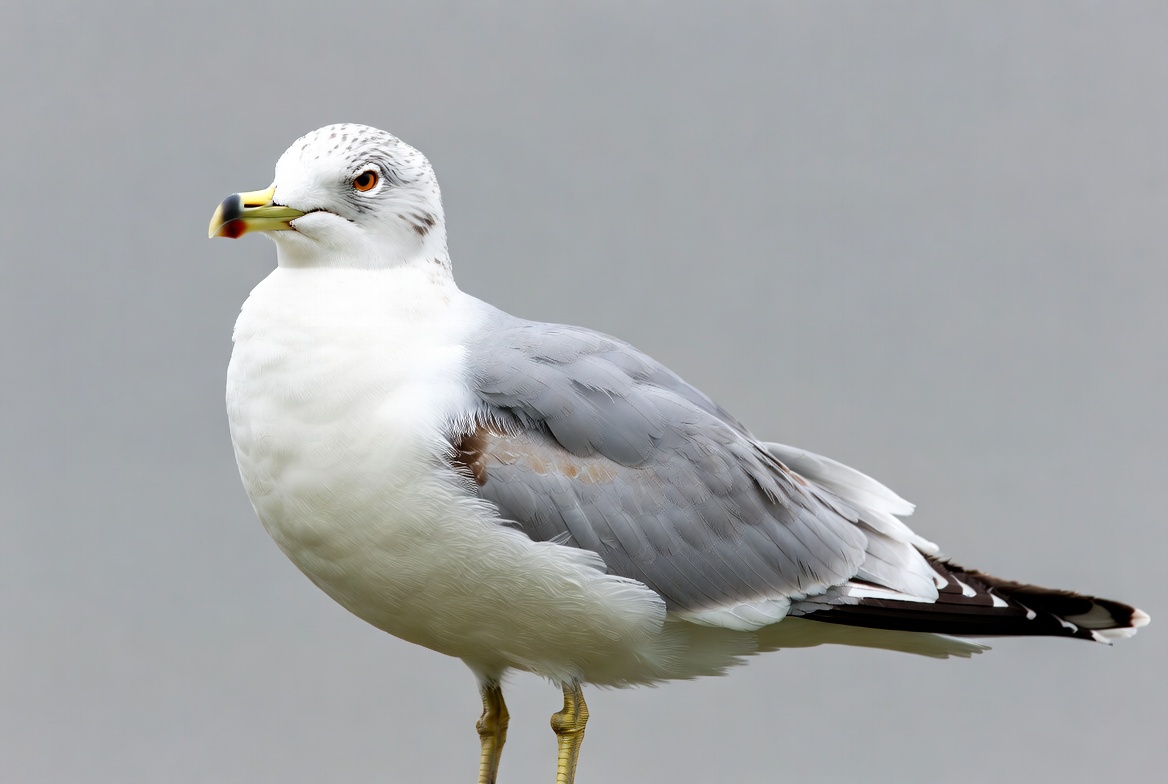 Gray gull standing on gray background