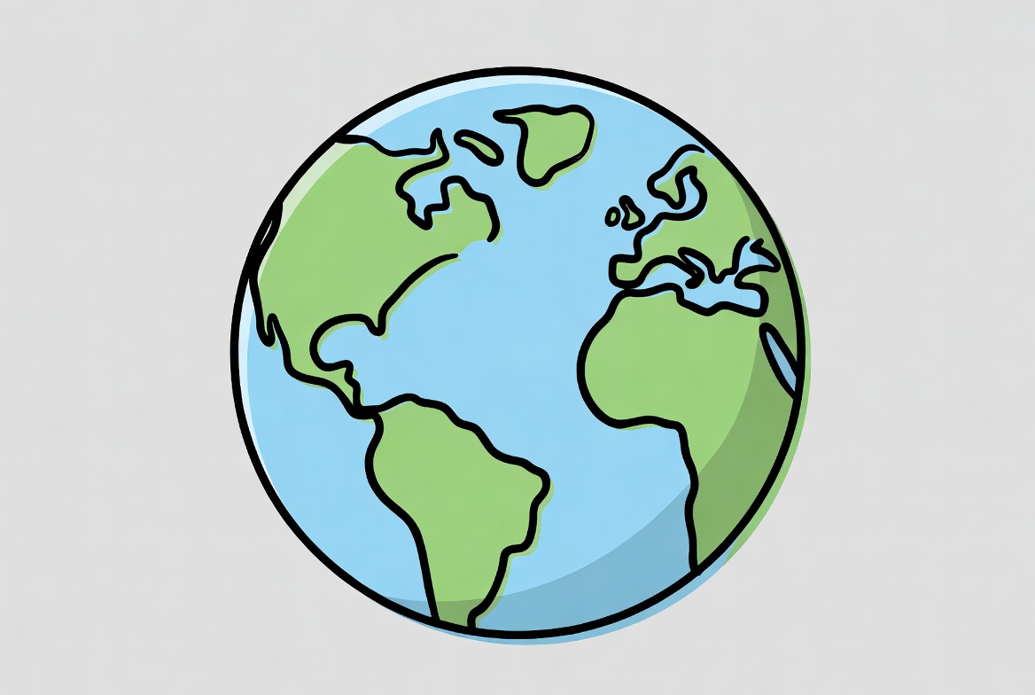 Africa, Earth, Europe, North America, South America, blue oceans, cartoon, clipart, drawing, geography, green continents, illustration, isolated background, line art, planet, simple, vector, world map, globe