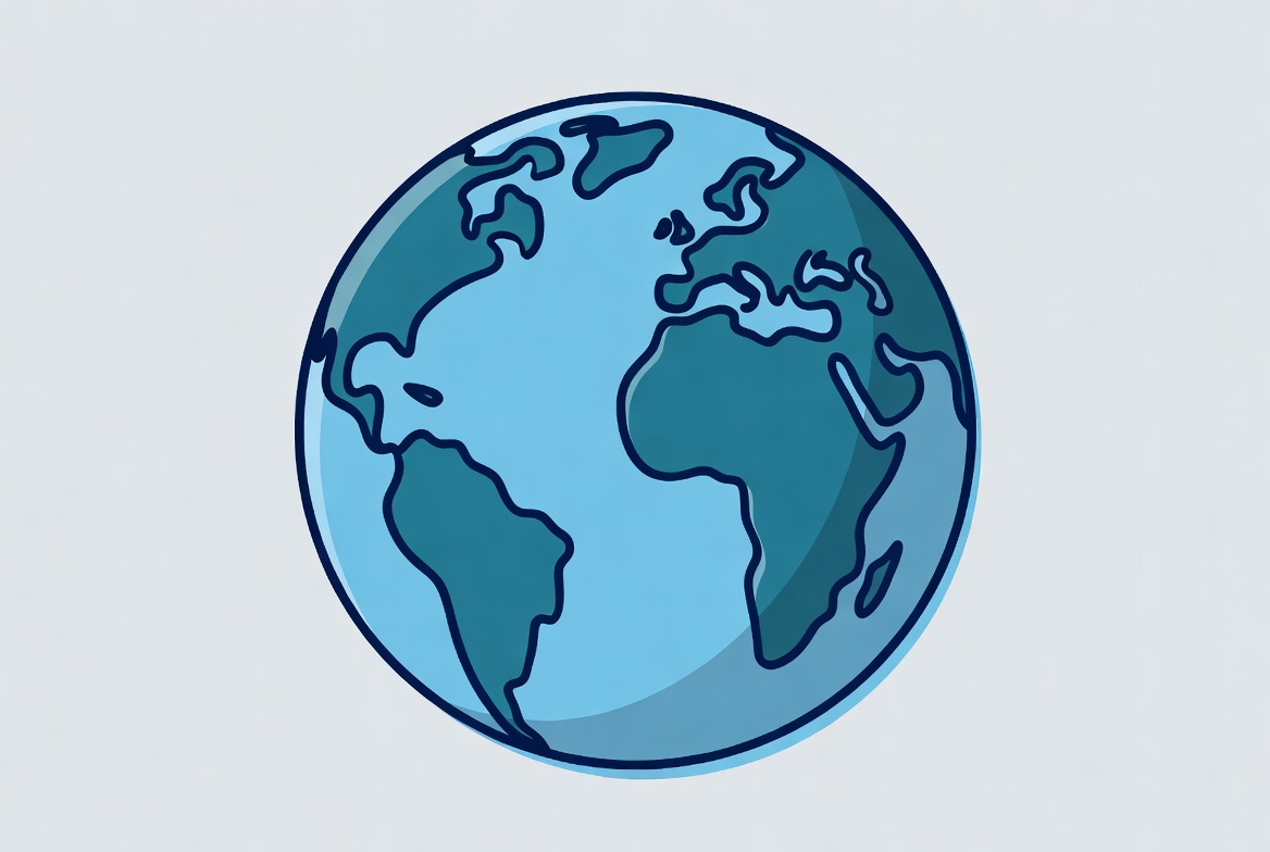 A vibrant blue illustration of the Earth globe features dark outlines of continents like North America, South America, Europe, and Africa. The planet is depicted on a light gray isolated background with smooth shading for a 3D effect. No people or additional elements are present.