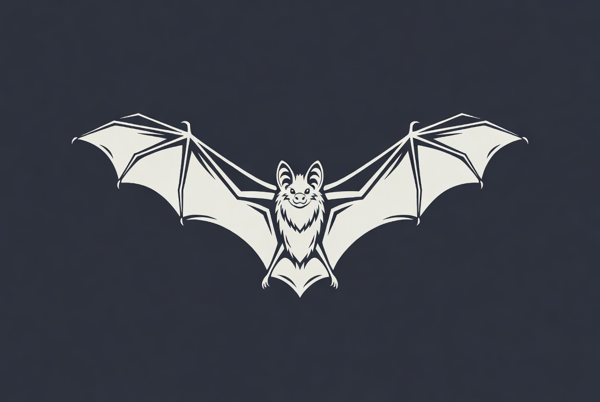 White bat illustration on dark background