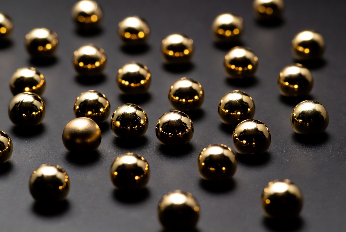 black background, close-up, glossy finish, gold beads, gold marbles, gold spheres, golden orbs, luxury texture, macro photography, metallic gold, metallic spheres, reflective balls, scattered balls, shiny balls, gold balls