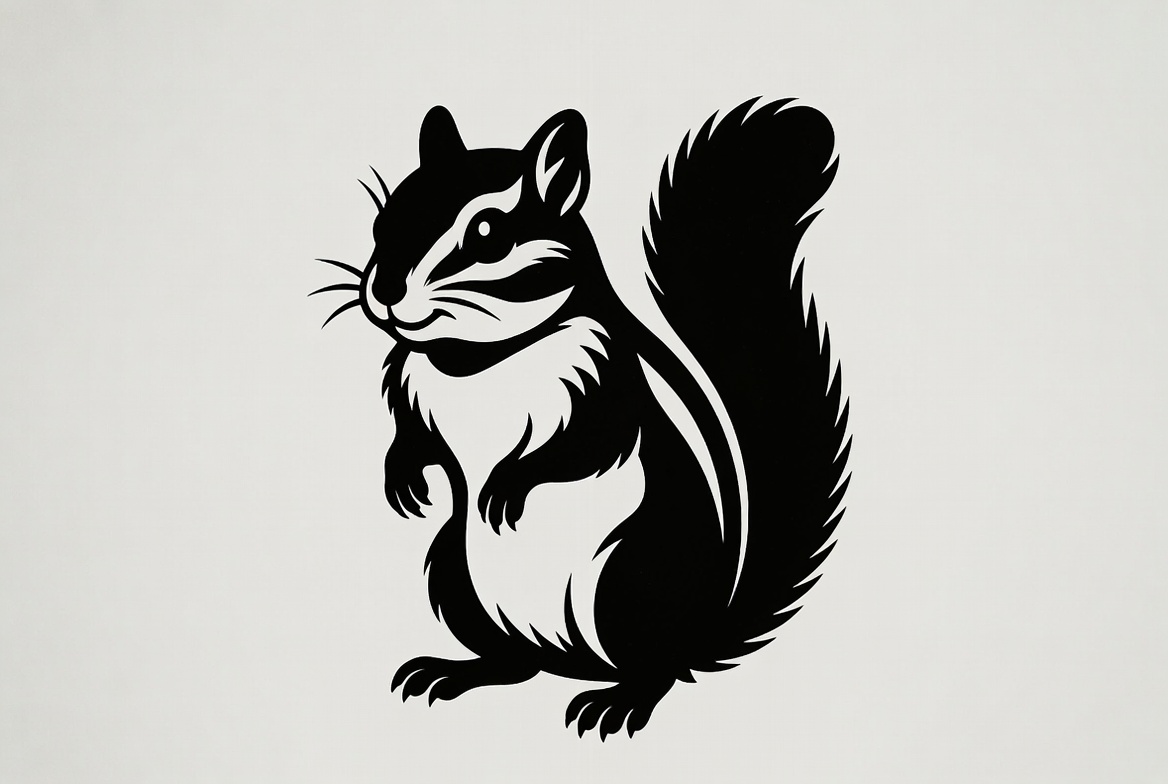 animal, black white, bushy tail, clipart, cute animal, ears, illustration, isolated background, paws, silhouette, striped fur, vector art, whiskers, wildlife graphic, chipmunk