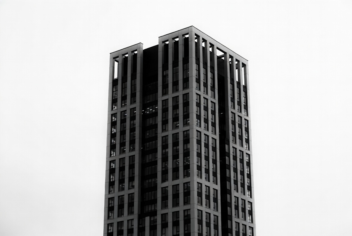 Modern High-Rise Building Black and White