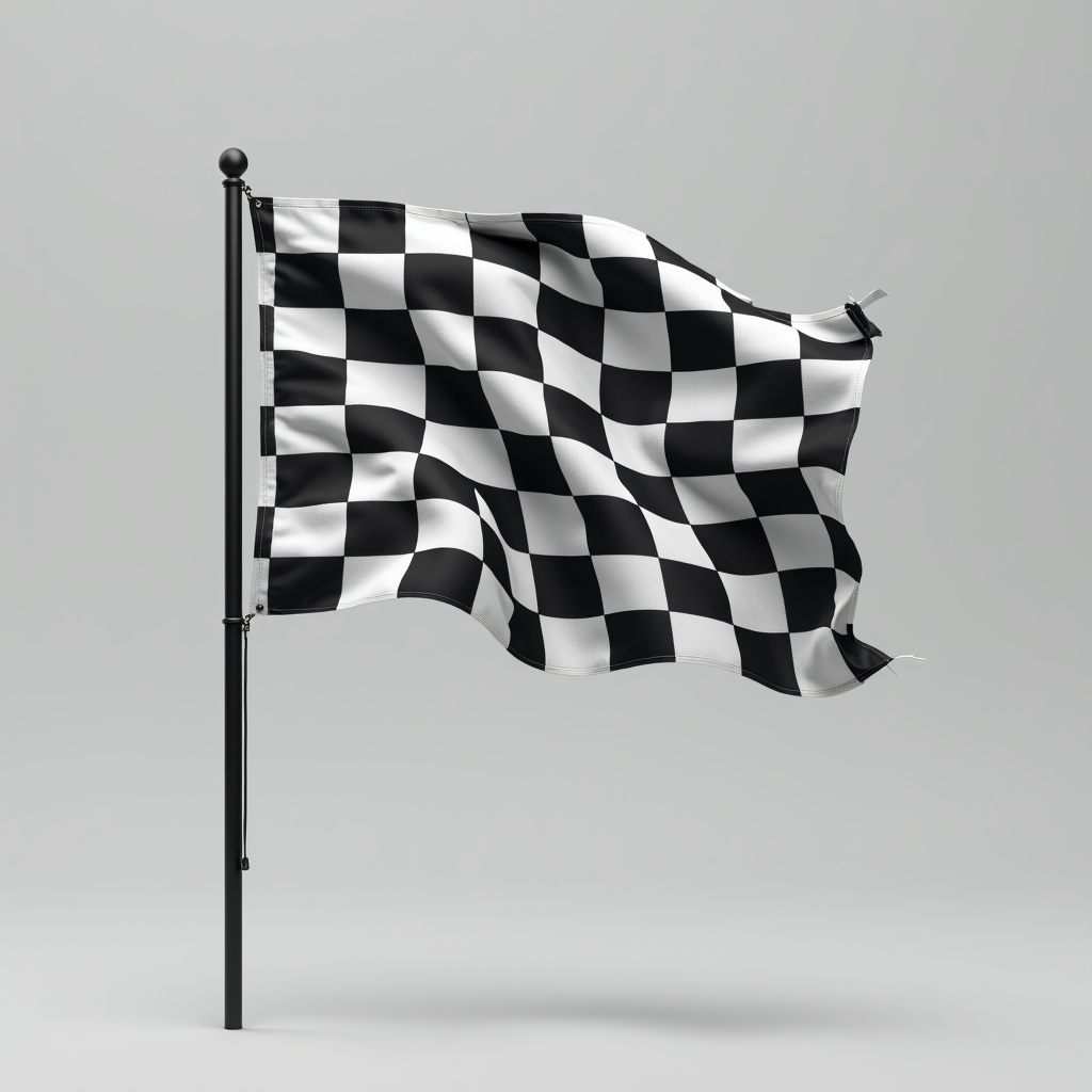3D render, auto racing, black pole, black white flag, checkered pattern, checkers, clipart, finial, finish line flag, flag pole, flag waving, graphic design, illustration, isolated background, motorsport flag, race flag, racing flag, speedway flag, transparent background, victory flag, waving flag, checkered flag
