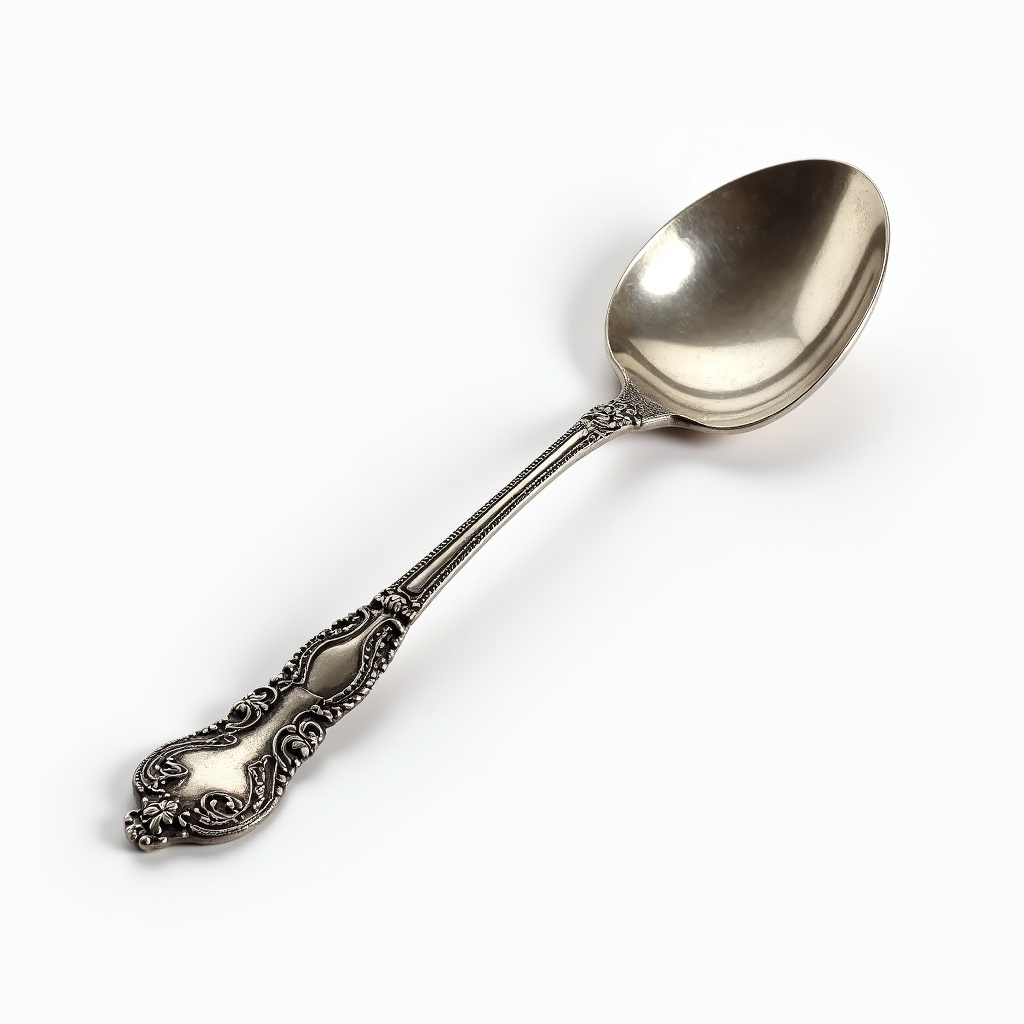 antique spoon, classic silverware, detailed handle, elegant cutlery, filigree design, isolated background, ornate spoon, polished spoon, serving spoon, silverware, tableware, utensil, vintage spoon, white background, silver spoon