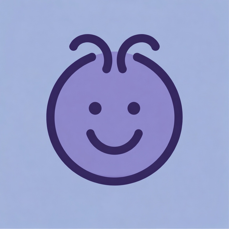 antennae, cartoon, clipart, emoji, eyes, face, graphic, happy face, icon, illustration, isolated background, purple, smile, smiley, vector, smiley face