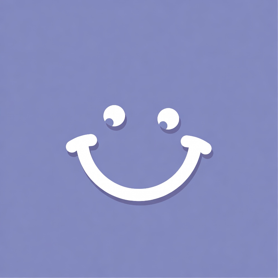 A simple white smiley face with round eyes and a curved mouth is centered on a solid purple background. The illustration features clean, bold lines and a cheerful expression. It appears as a flat vector graphic design.