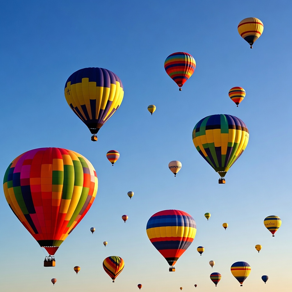 aerial balloons, balloon cluster, balloon flight, balloons in sky, blue balloon, blue sky, colorful balloons, daytime sky, floating balloons, green balloon, hot air balloon festival, inflated balloons, multicolored balloons, rainbow balloon, red balloon, sky background, sunny sky, vibrant colors, yellow balloon, hot air balloons