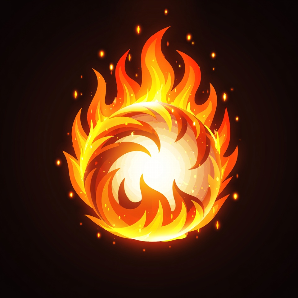 burning sphere, circular fire, clipart, digital illustration, fiery ball, fire graphic, flame design, flame sphere, flames, heat, illustration, inferno, intense flames, isolated background, orange fire, sparks, swirling fire, vector art, yellow flames, fire