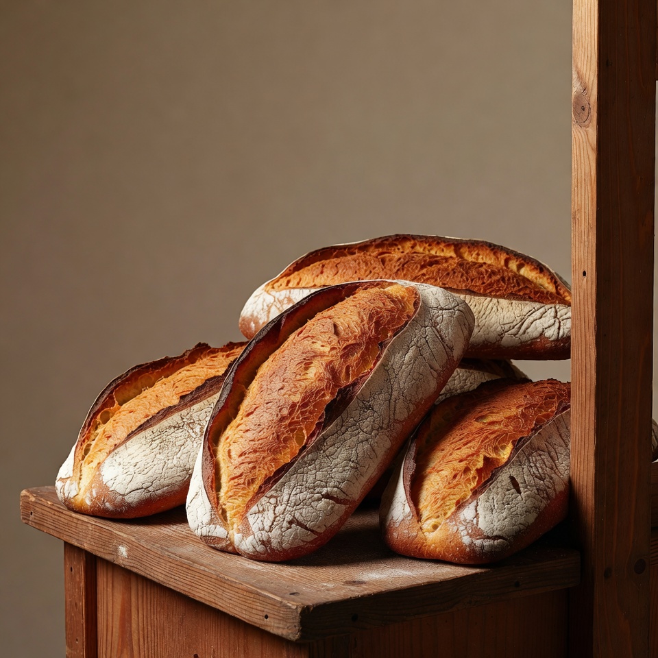 French bread, artisan bread, baguette, baked goods, bakery, crusty bread, flour dust, food photography, fresh bread, golden crust, loaf stack, loaves, oven fresh, rustic bread, sourdough, stacked bread, wheat bread, wood surface, wooden frame, bread