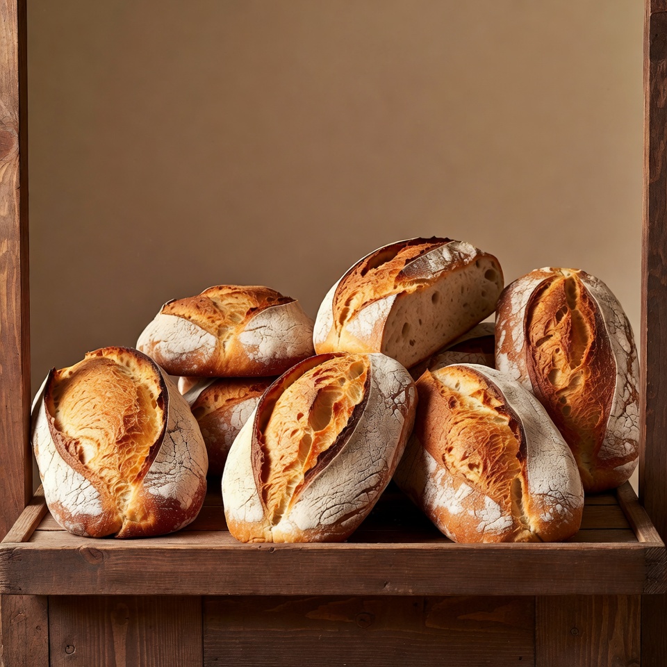 artisan bread, baguette, baked goods, bakery, baking, bread basket, crusty bread, dough, flour dusting, food, fresh bread, golden bread, loaves, oven fresh, pastry, pile, rustic bread, sourdough, stack, wheat bread, wooden crate, bread