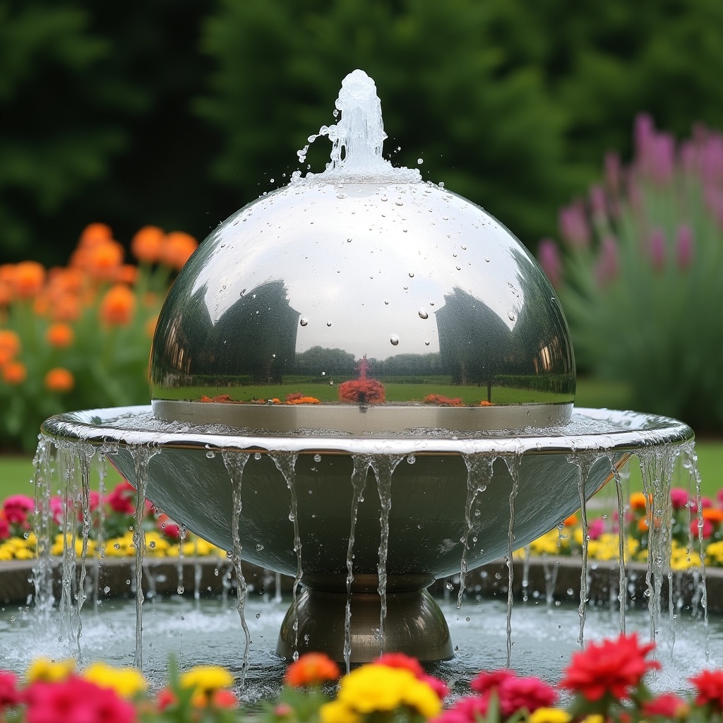 Shiny Spherical Water Fountain in Garden