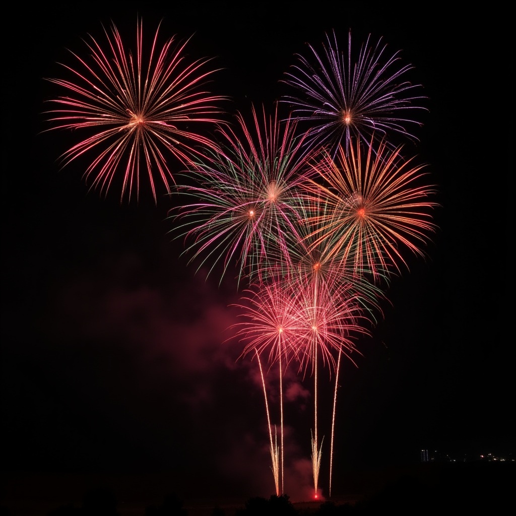 Colorful Fireworks Exploding in Night Sky