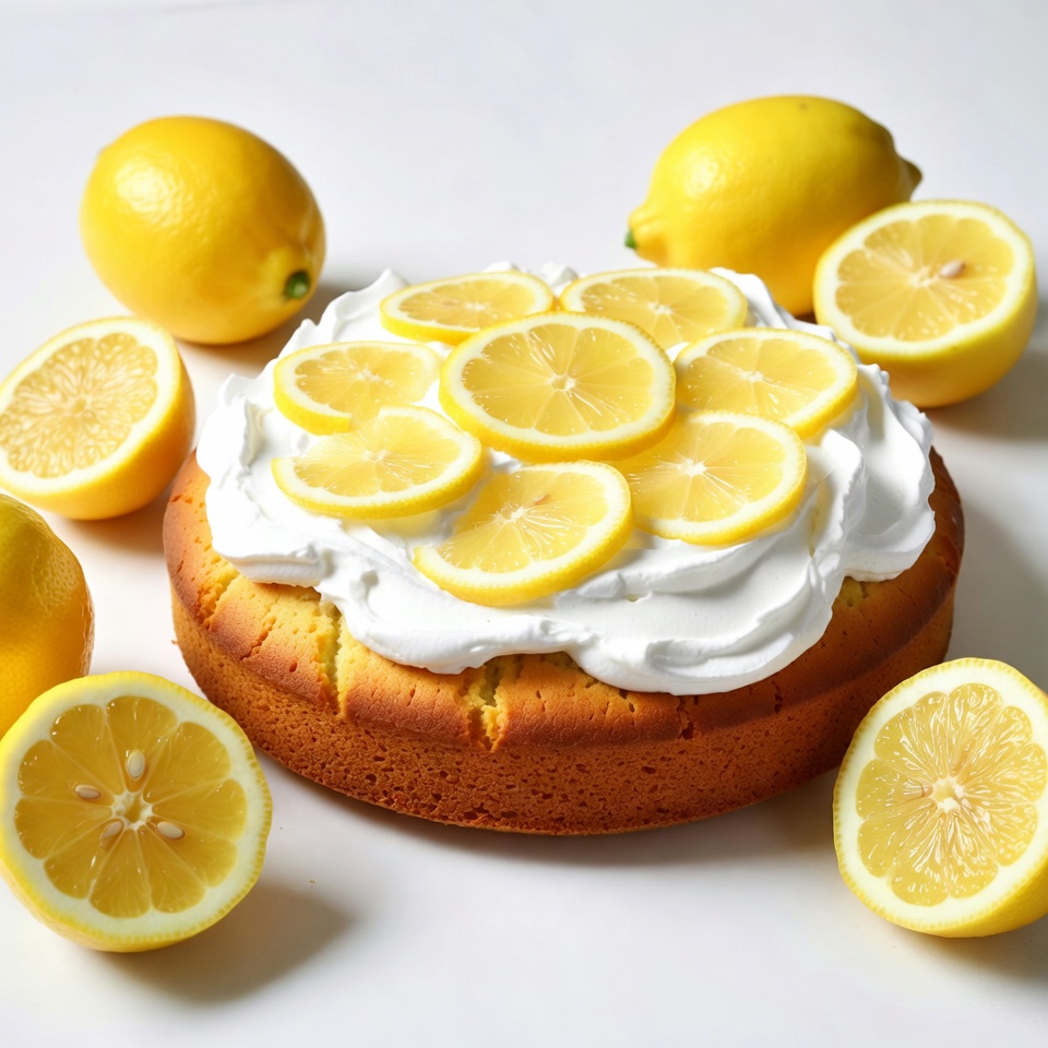 Lemon Cake with Whipped Cream and Slices