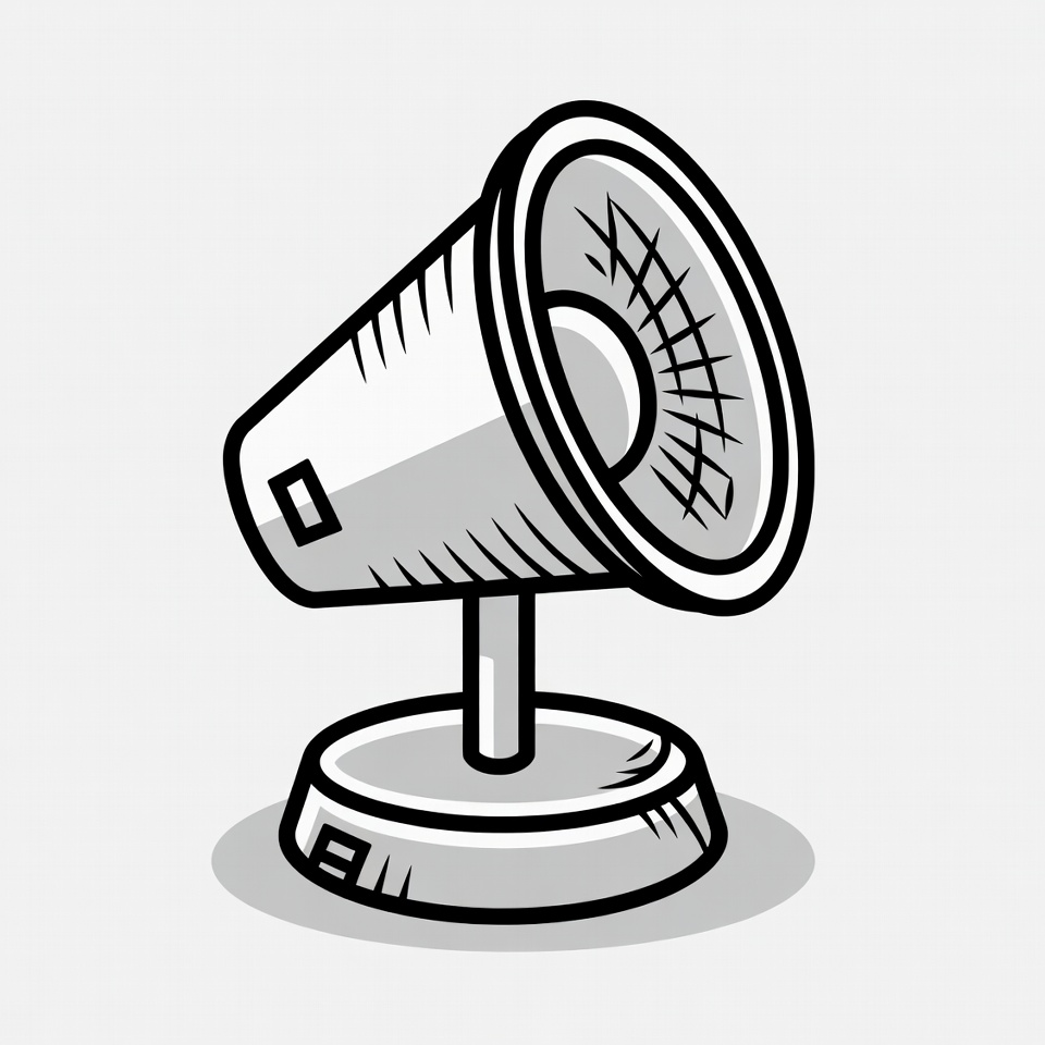 black and white, cartoon spotlight, clipart, conical shade, crosshatch, drawing, graphic, illustration, isolated background, lamp, light, line art, mesh grille, stage light, stand, spotlight