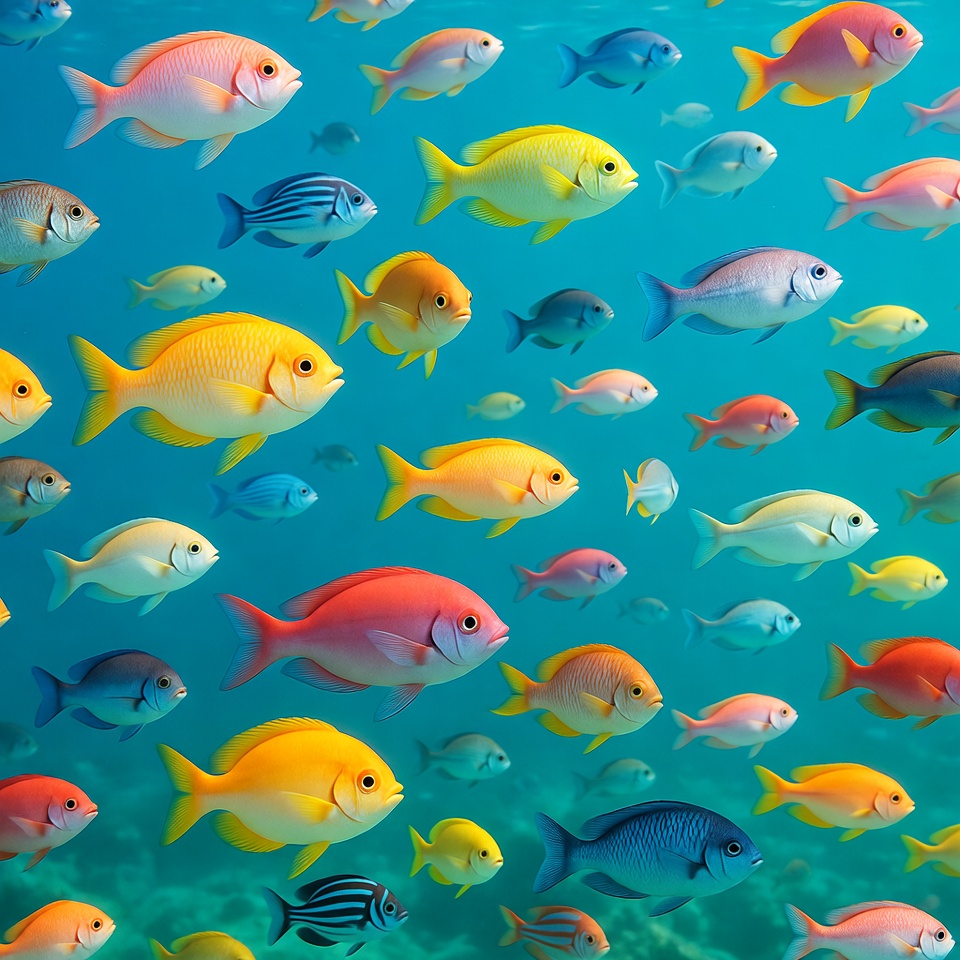 3D fish, animated fish, aquarium, blue fish, colorful fish, coral reef fish, exotic fish, fish school, marine animals, ocean, orange fish, pink fish, purple fish, sea life, swimming fish, turquoise water, underwater, vibrant colors, yellow fish, tropical fish
